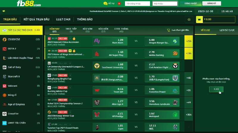 Tổng hợp loạt kèo Esports FB88 siêu hấp dẫn